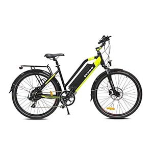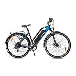URBANBIKER Viena Trekking E Bike Blau/Gelb, Motor 250W, herausnehmbarer Lithium Akku 840 WH (48v 17,5Ah), für Damen und…